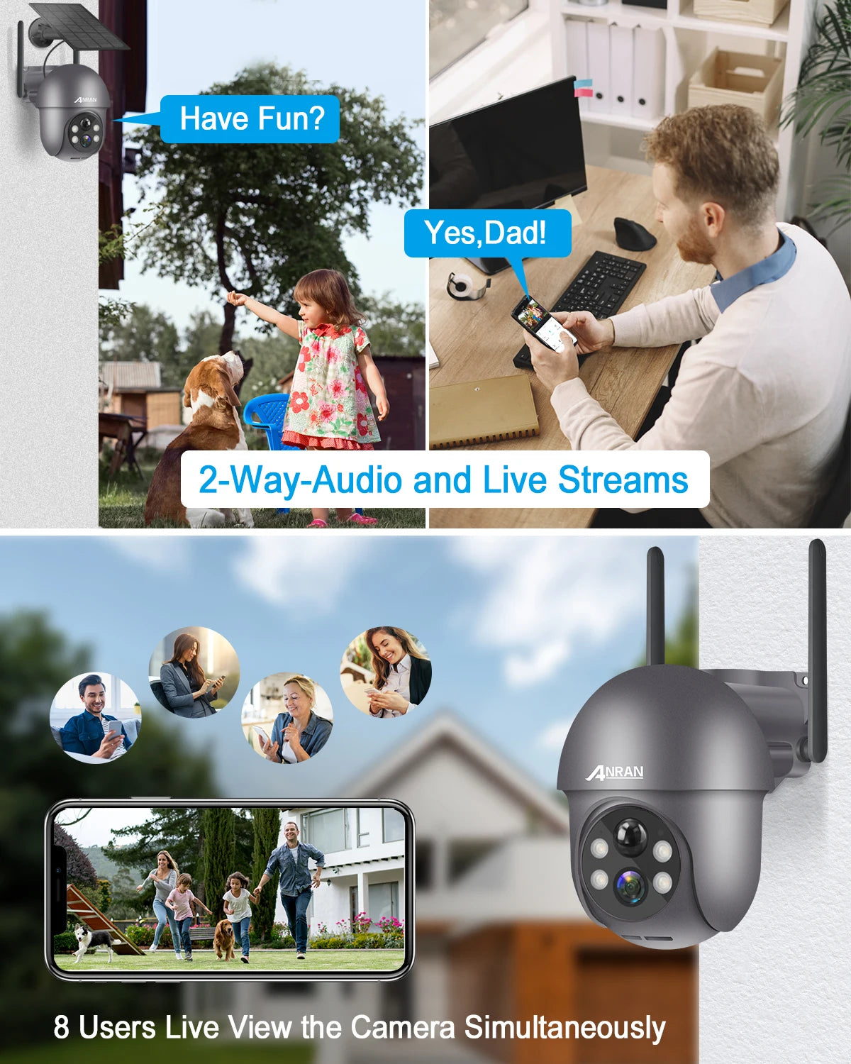 ANRAN Battery Powered PTZ Camera With Solar Panel 3MP Wireless Wifi Network Security Solar Cctv Camera