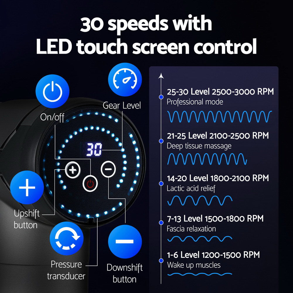 Everfit Massage Gun 30 Speed 6 Heads Vibration Muscle Massager Chargeable Black