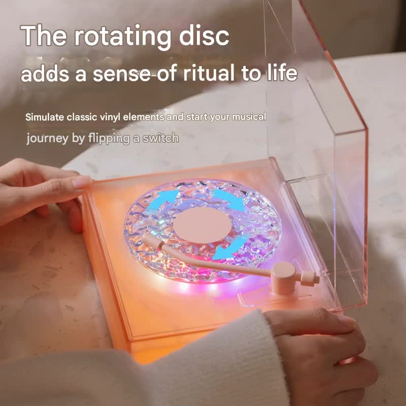 Retro Vinyl Bluetooth Speaker with Water Ripple Light Projection & 360 Surround Sound(pink)