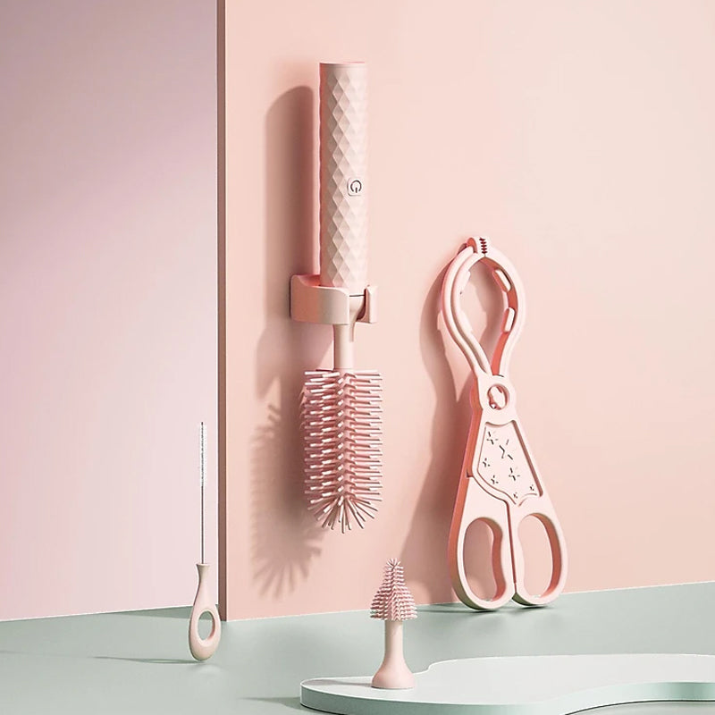 Vibe Geeks 360° Rotation Long Handle Reusable Silicone Baby Bottle Brush Set - Pink