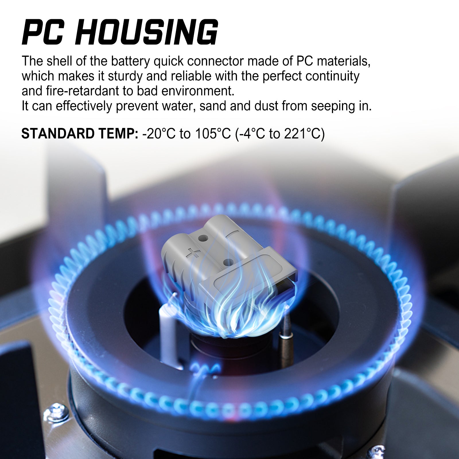 The plug is made of impact-resistant polycarbonate, the connector is made of solid copper and nickel, and the terminals are silver-plated.